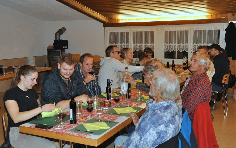 noch schnell anstossen, bevor man anstehen muss/darf