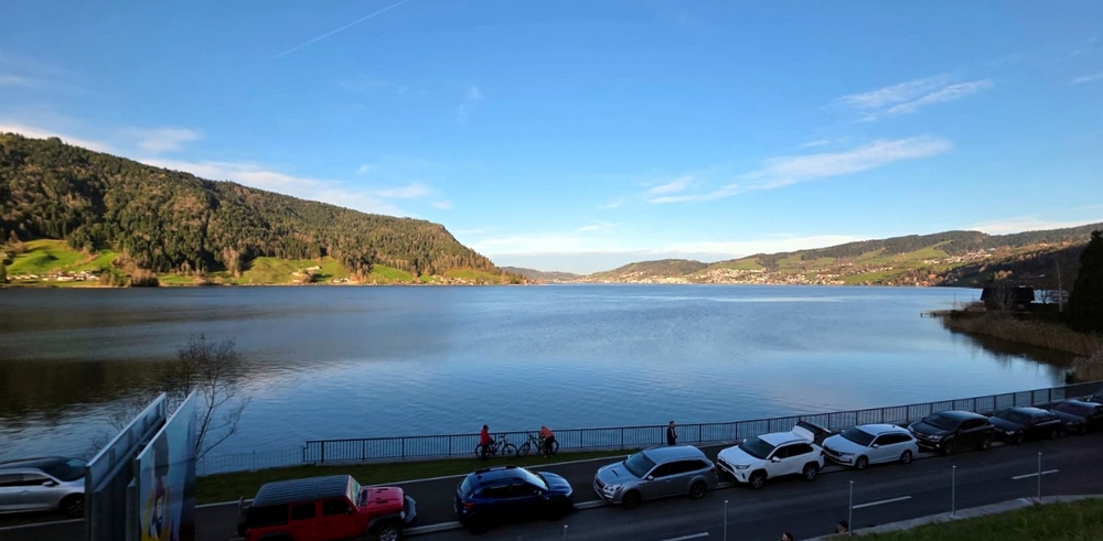 leicht bedeckt, 12 Grad, Wind 16 km/h aus südlicher Richtung (leicht von rechts)