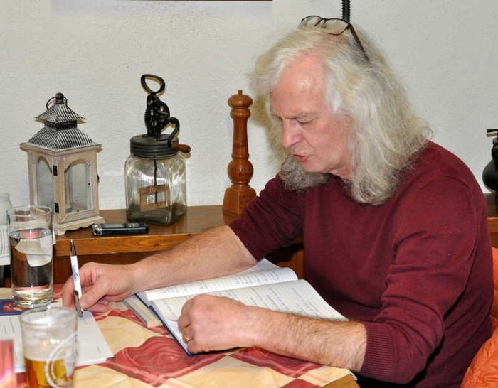 Aktuar "an work" - er liest aus seinem hangeschriebenen Protokollbuch