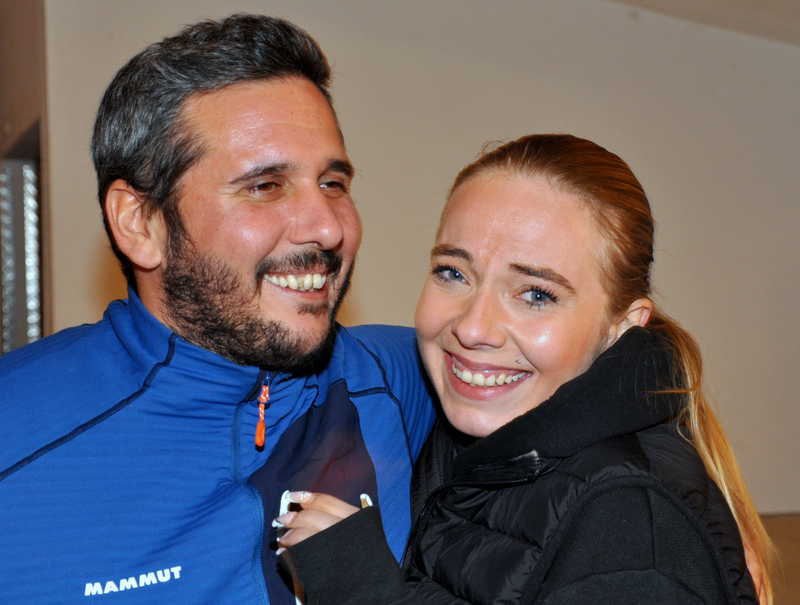 so lacht ein Sieger und dessen Freundin