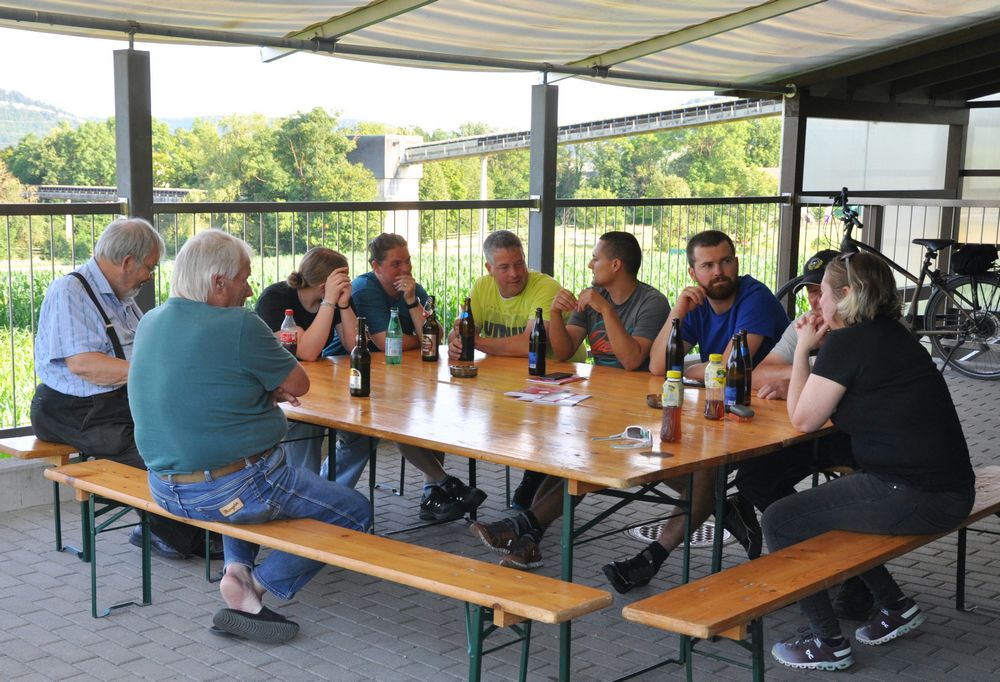 die ersten Ankömmlinge - Bier hat's, auf die Wurst müssen sie noch warten